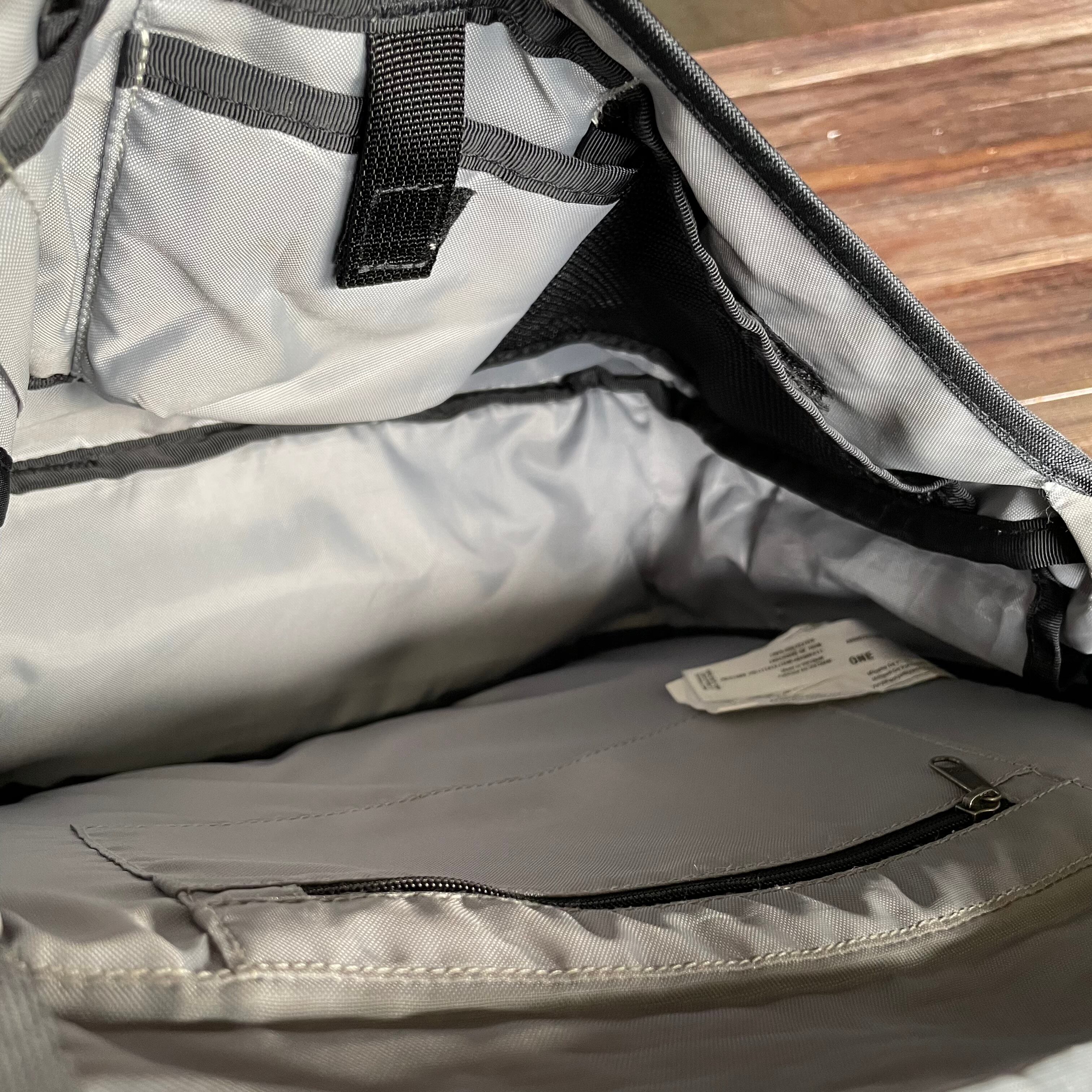 コンパクトなボディですが、マチが意外とあって収納力抜群。内部、背面にもポケットがあるので財布や鍵、タブレットなど小物を分けて収納可能。