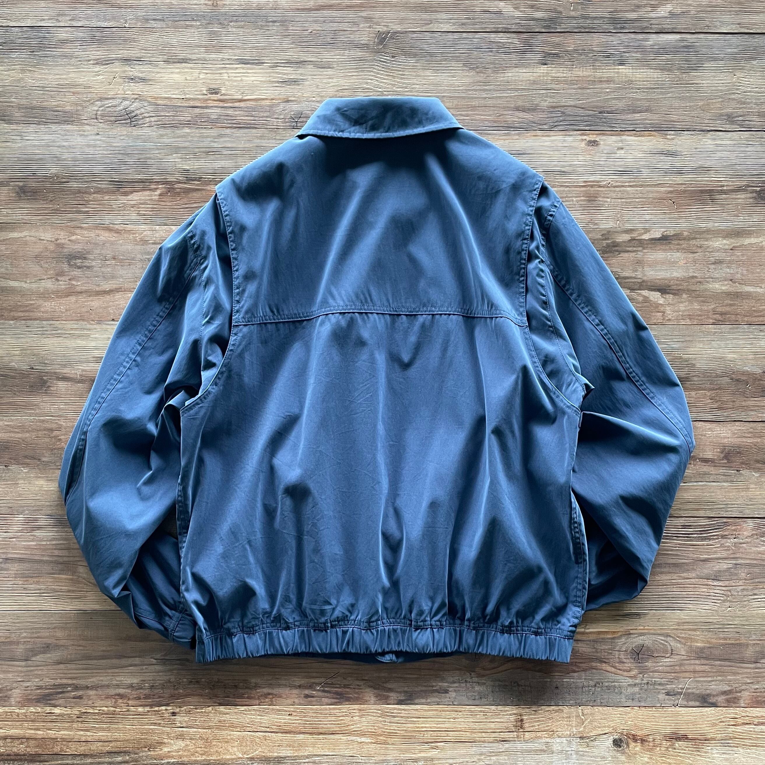 ポリとナイロン素材でしっとりとした質感の爽やかネイビージャケット。