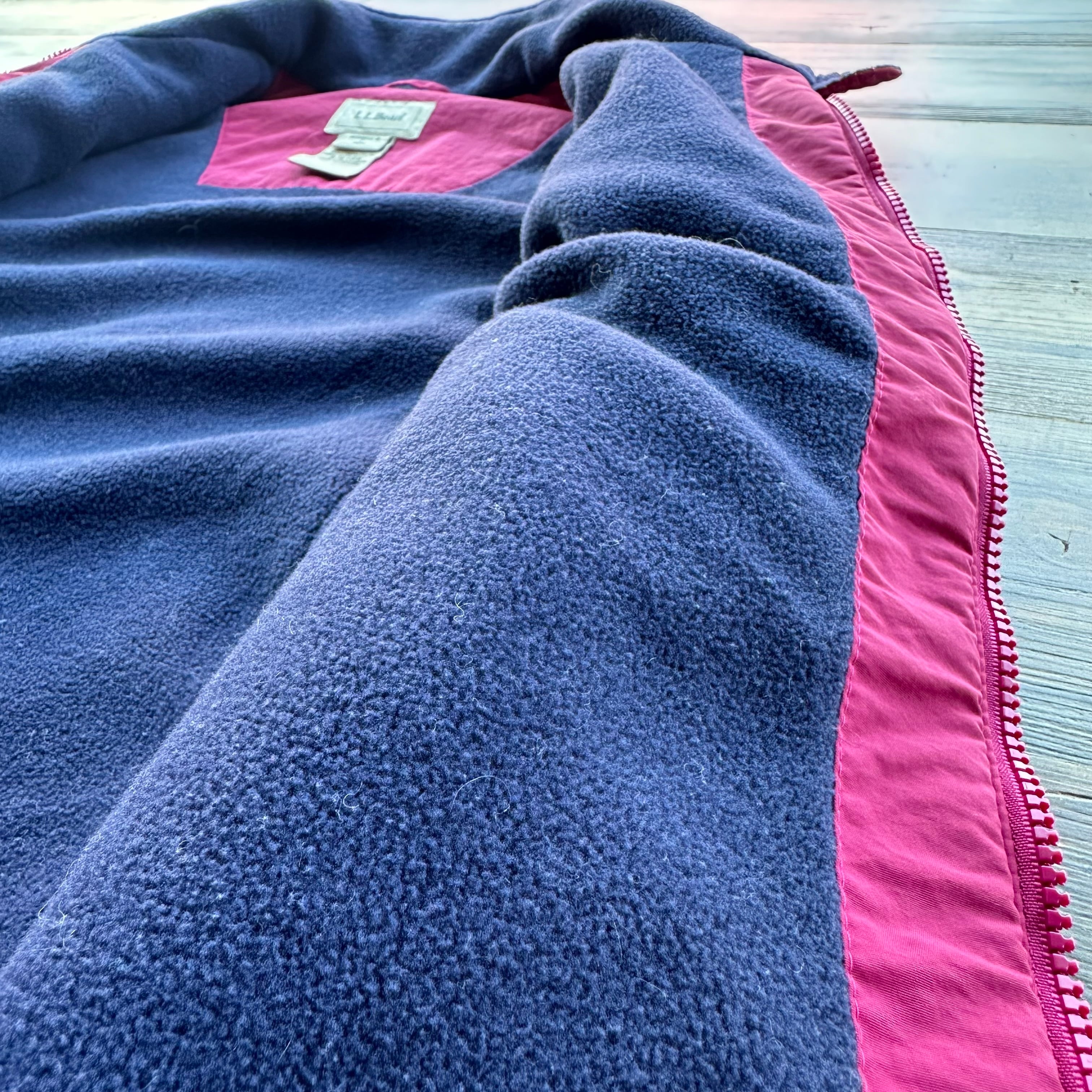 ナイロンシェルに裏地がフリースなので防風性もあって暖かいです。アウトドアシーンにも映える発色のいいピンクもいい感じです!
